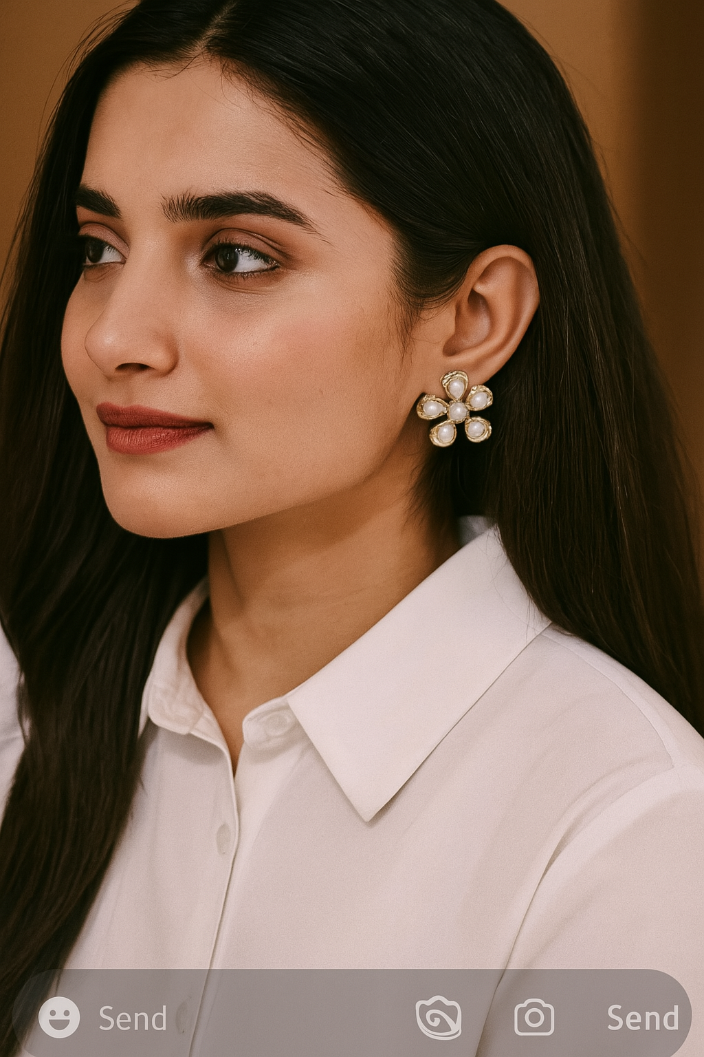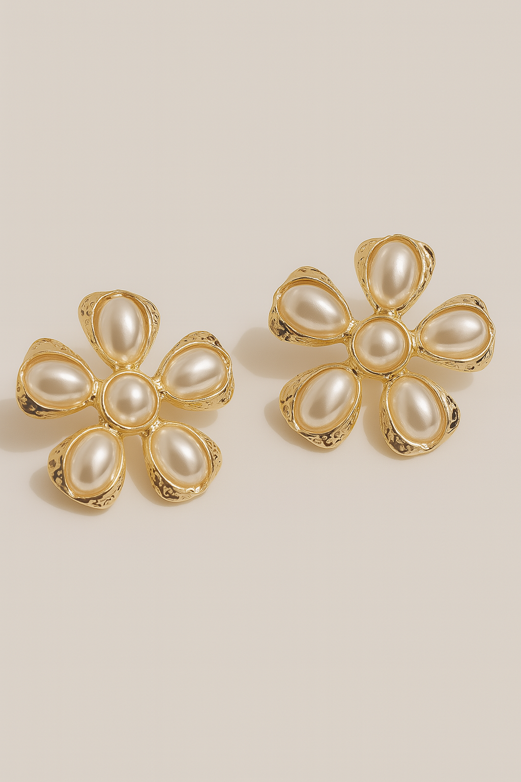 “A statement of sophistication – gold-plated floral earrings with lustrous pearls, designed for the modern woman who adores timeless elegance.”