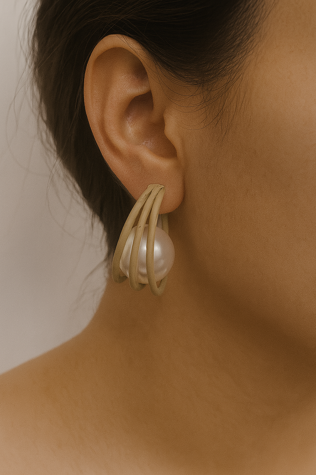 Lightweight yet eye-catching, these earrings add a touch of luxury to both casual and formal outfits. The unique structure allows the pearl to subtly catch the light, creating a soft, enchanting glow. Whether for weddings, evening events, or refined everyday wear, this piece is a standout in any jewelry collection